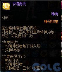 雾核,拥有帐号绑定版的浓缩雾核与可交易版的无瑕雾核。