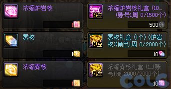 10个浓缩的炉岩核可兑换1个浓缩雾核,每个账号每周最多可兑换2000次。
