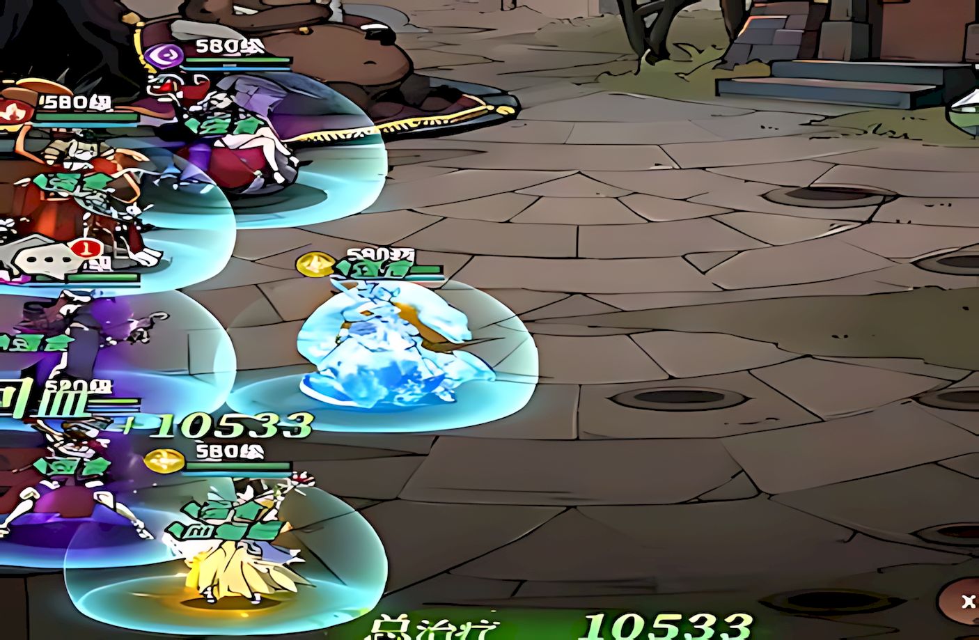 2、首个核心技能为全队持续回血buff,回血速度迅猛且无回合限制持续生效,能彻底解决血量不足隐患。