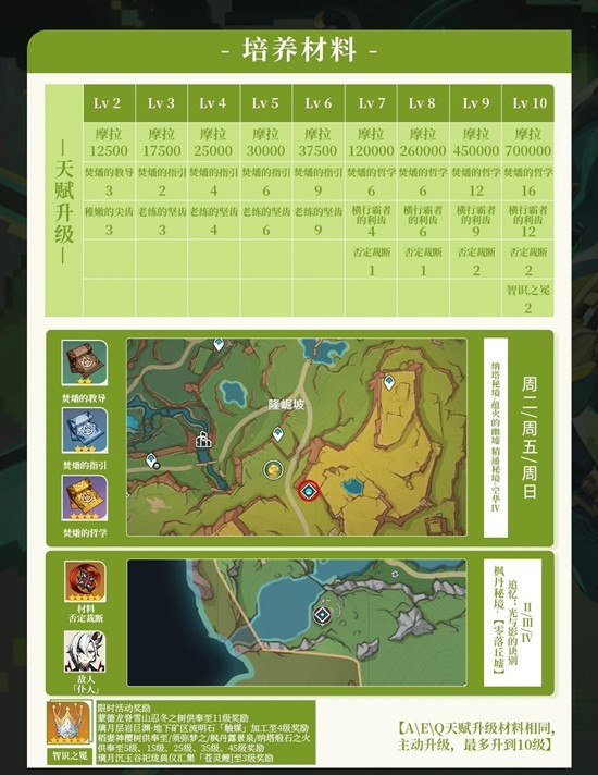 3、培养材料包含摩拉焚燔系列道具各类齿状材料否定裁断等,不同突破和天赋等级所需材料不同,部分需从特定秘境活动或敌人处获取。