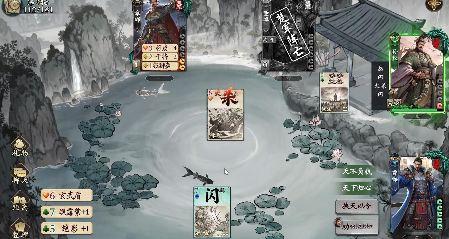 3、三技能魏武遗风为击杀资源接管机制,击杀角色时可获得其全部手牌与装备,快速扩充进攻组件,也可配合队友牺牲实现资源。