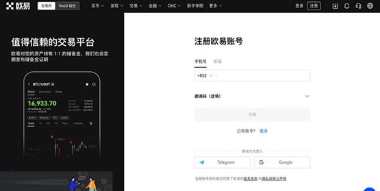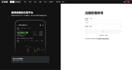 1、访问欧易官网(),在首页点击注册进入注册页面