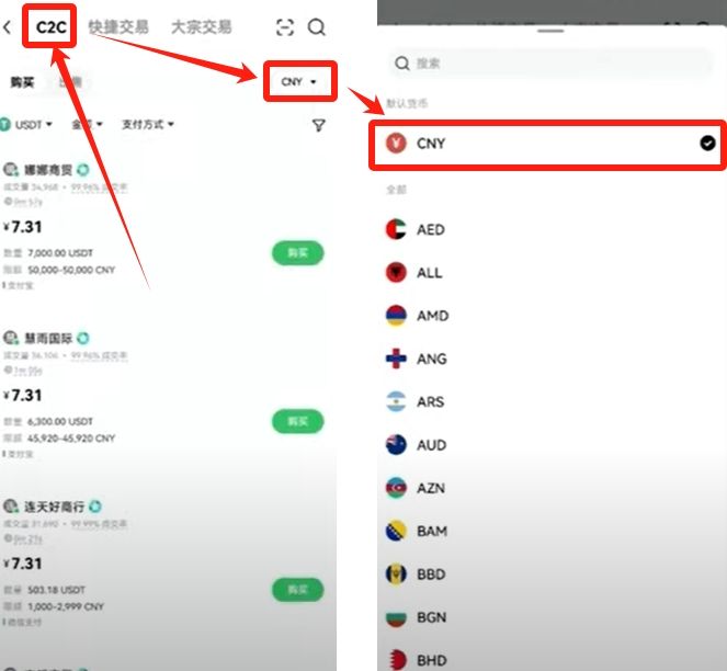C2C交易区支持支付宝、微信等主流支付方式,购买USDT时建议: