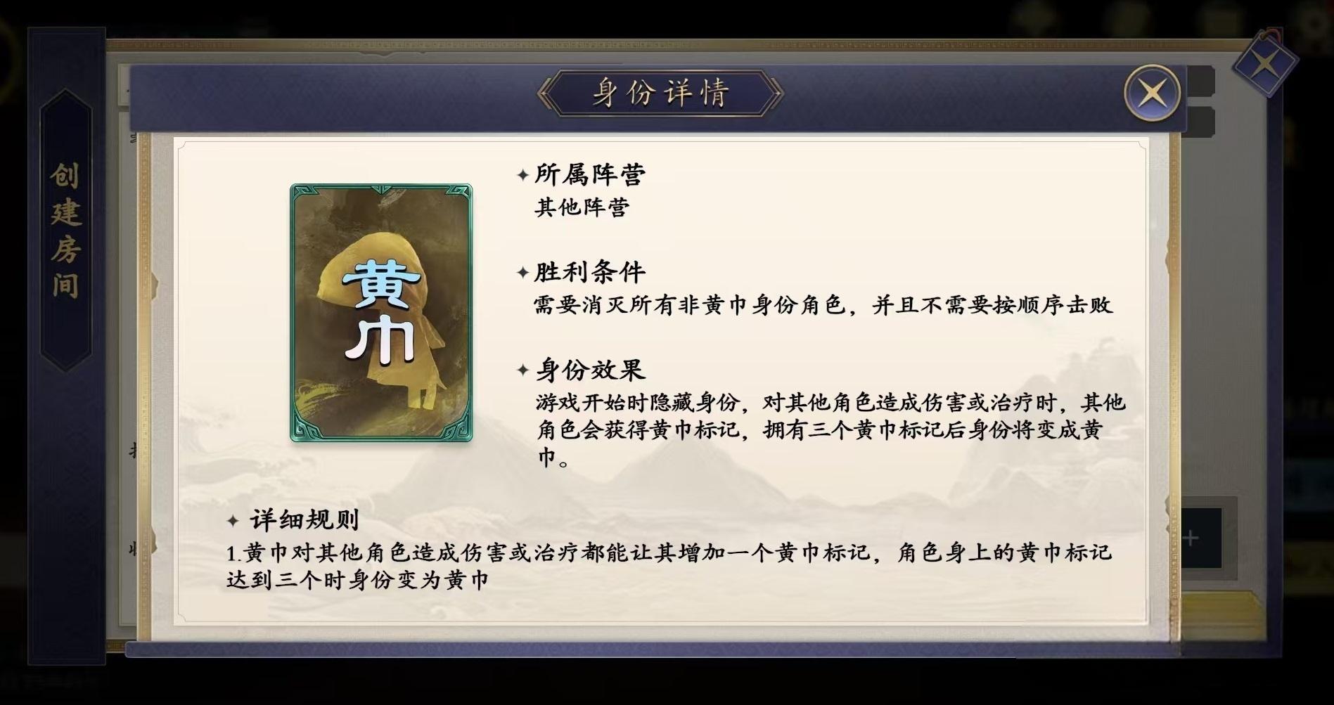 4、黄巾标记仅黄巾身份可见,转换阵营者同步变更胜利条件,主公等特定身份无法转换,维持玩法核心平衡。