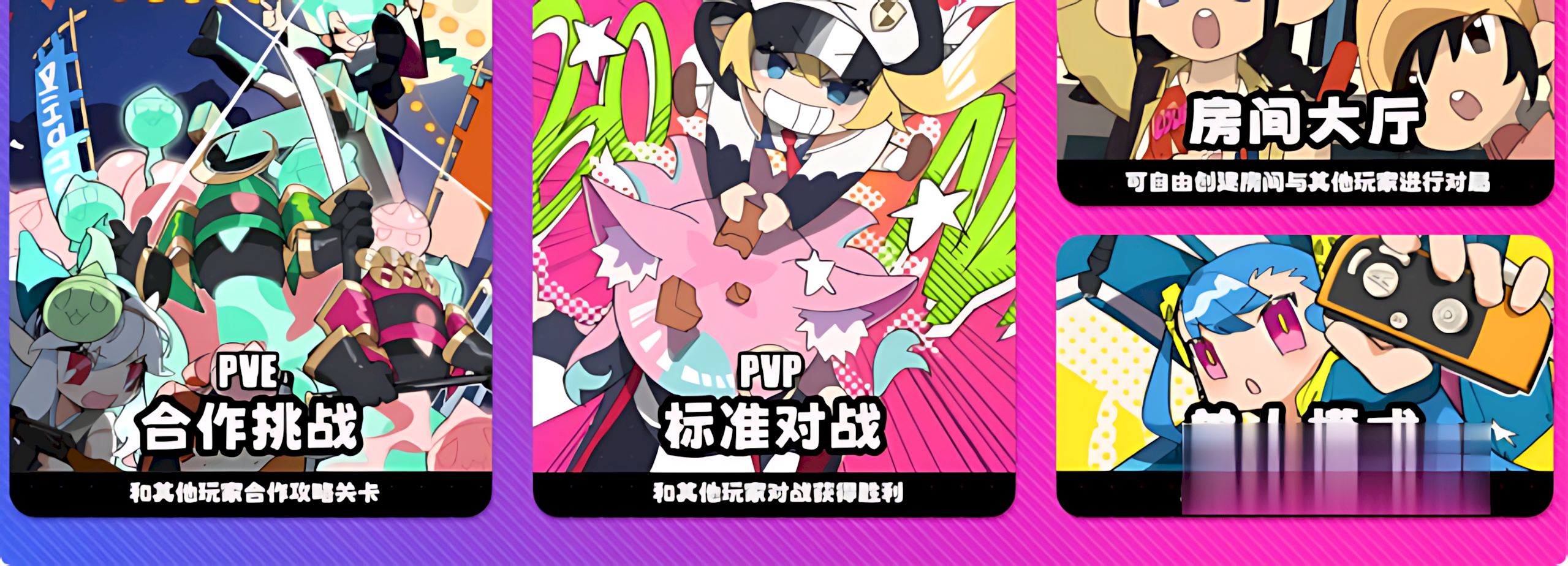 1、游戏包含三类核心模式,四人组队协作通关的PVE模式考验默契,四人竞技角逐的PVP模式比拼实力,单人模式可挑战或与机器人熟悉地图。