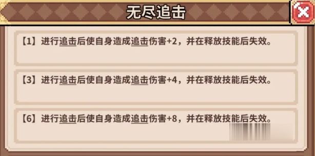 4、无尽追击是射手最强增伤装备,1级进行追击后追击伤害加2,释放技能后失效,3级加4,6级加8,能显著提升射手追击阶段的输出能力。