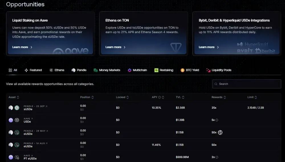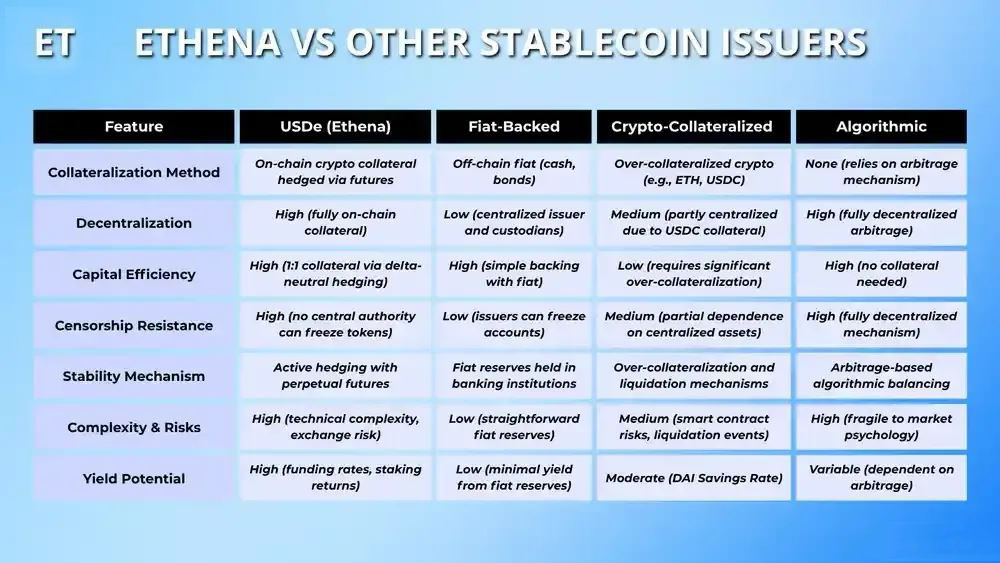 Ethena是一个创新性的去中心化协议,发行了三种独特的稳定币:USDe(合成美元)、sUSDe(收益代币)和USDtb(国库支持稳定币)。该协议巧妙融合了DeFi、CeFi和TradFi的优势,为全球用户提供具有收益潜力的美元计价资产解决方案。