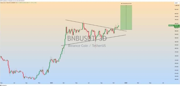 DigitalCoinPrice预测2025年BNB可能触及1,628美元,PricePrediction则给出2030年6,953美元的乐观预期。技术分析师ZAYK Charts指出,突破700美元关键阻力后,BNB有望冲击千元大关。