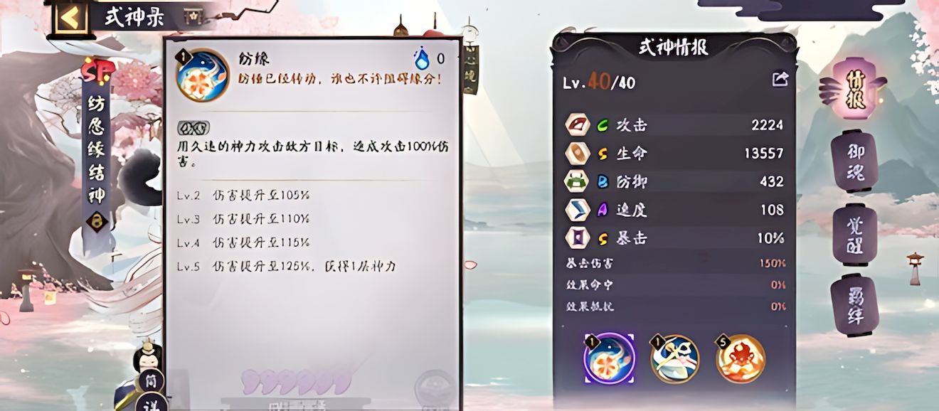 2、二技能可给队友缔结两种缘分,同时让自身免疫行动条改变,未指定友方结缘时,自身能直接获得两层神力助力快速叠层。
