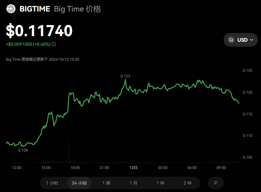 Big Time作为融合动作RPG与NFT奖励的Web3游戏平台,凭借创新的P2E机制和低门槛设计迅速吸引全球玩家关注。其原生代币BIGTIME已上线Coinbase等13家主流交易所,近期因合约上线消息单日涨幅超3%,当前市值突破1亿美元。