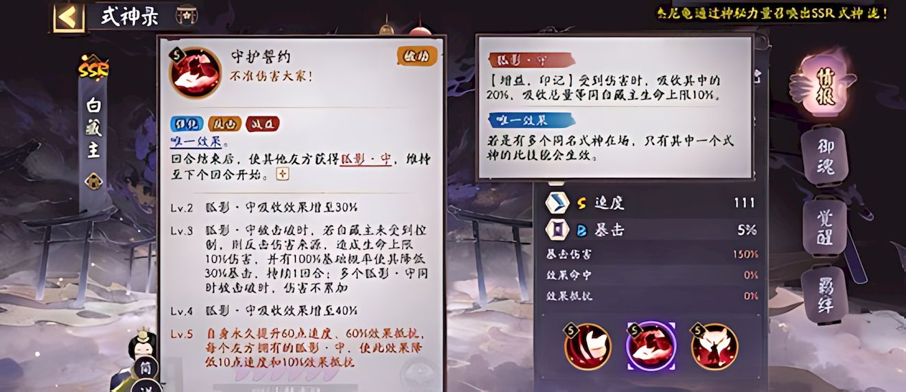 4、白藏主存在核心机制限制,自身若受到控制效果,将无法为友方提供守护效果,实战需优先保证自身不被敌方控制。