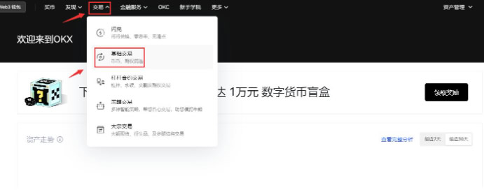 4.认证完成后,在首页点击"交易"-"基础交易"进入交易界面。