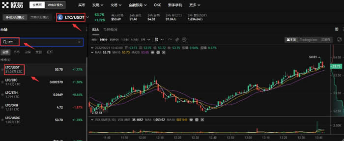 在欧易平台进行莱特币交易只需简单几步: