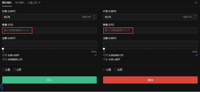 6.输入购买数量(最低0.01 LTC)即可完成交易。