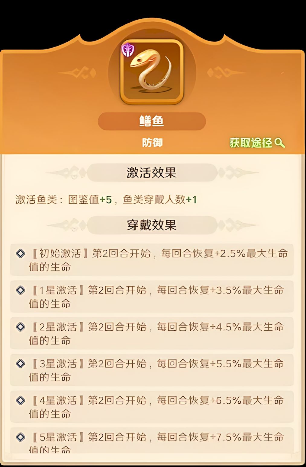 5、养成优先级低于关羽赵云等输出,需适度分配资源保证生存,鱼类推荐鳝鱼提升生命值与回复,其他鱼类按生存思路选择。