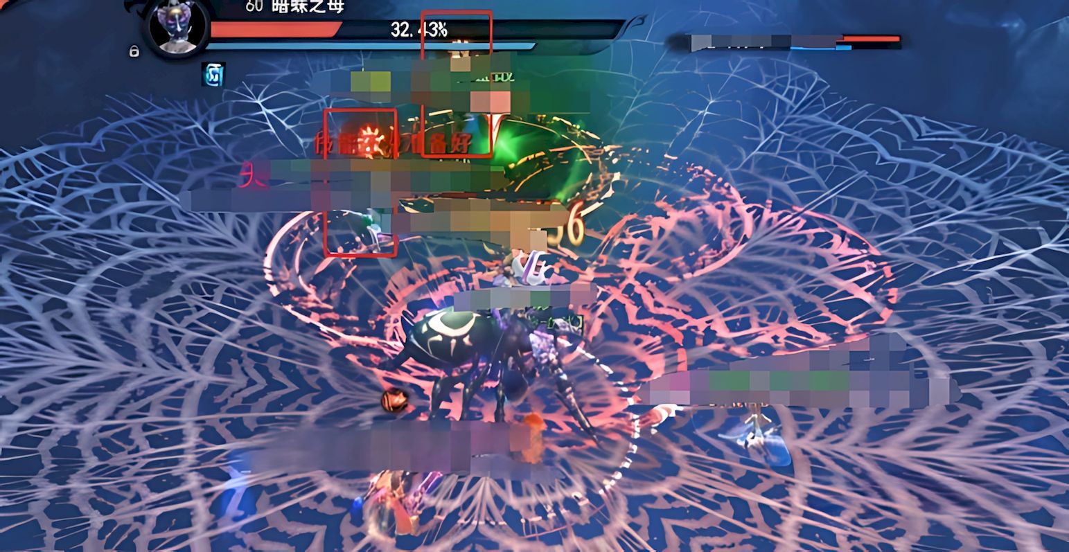 2、暗蛛之母考验团队协作,重点应对毒爆机制,被标记玩家需分散至边缘移动,避免毒液叠加承伤,其余队员预判陷阱路径预留安全通道。