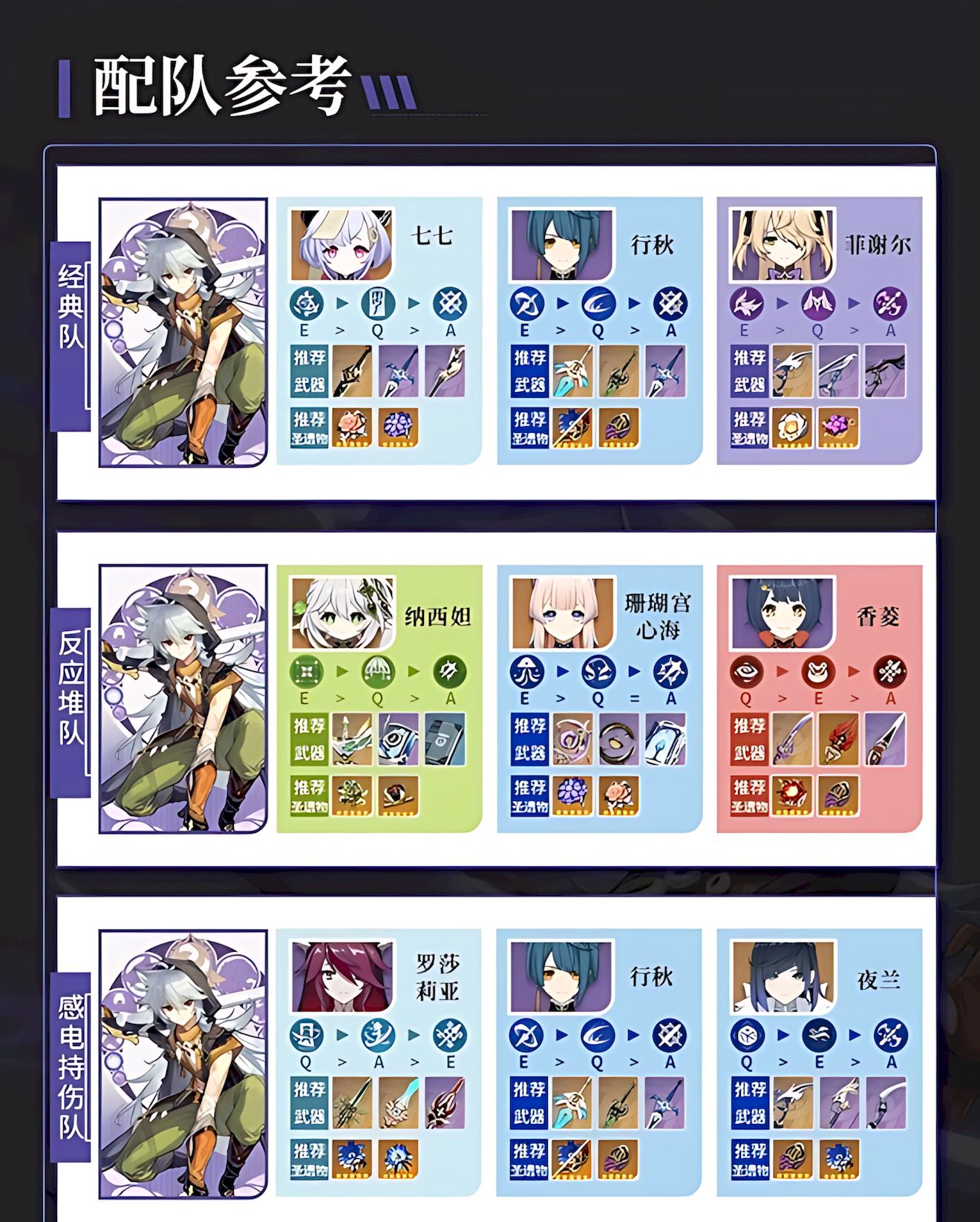 5、配队可搭罗莎莉亚班尼特行秋组成超导队,或纳西妲心海香菱玩反应流,核心围绕超导减抗或元素反应放大输出。