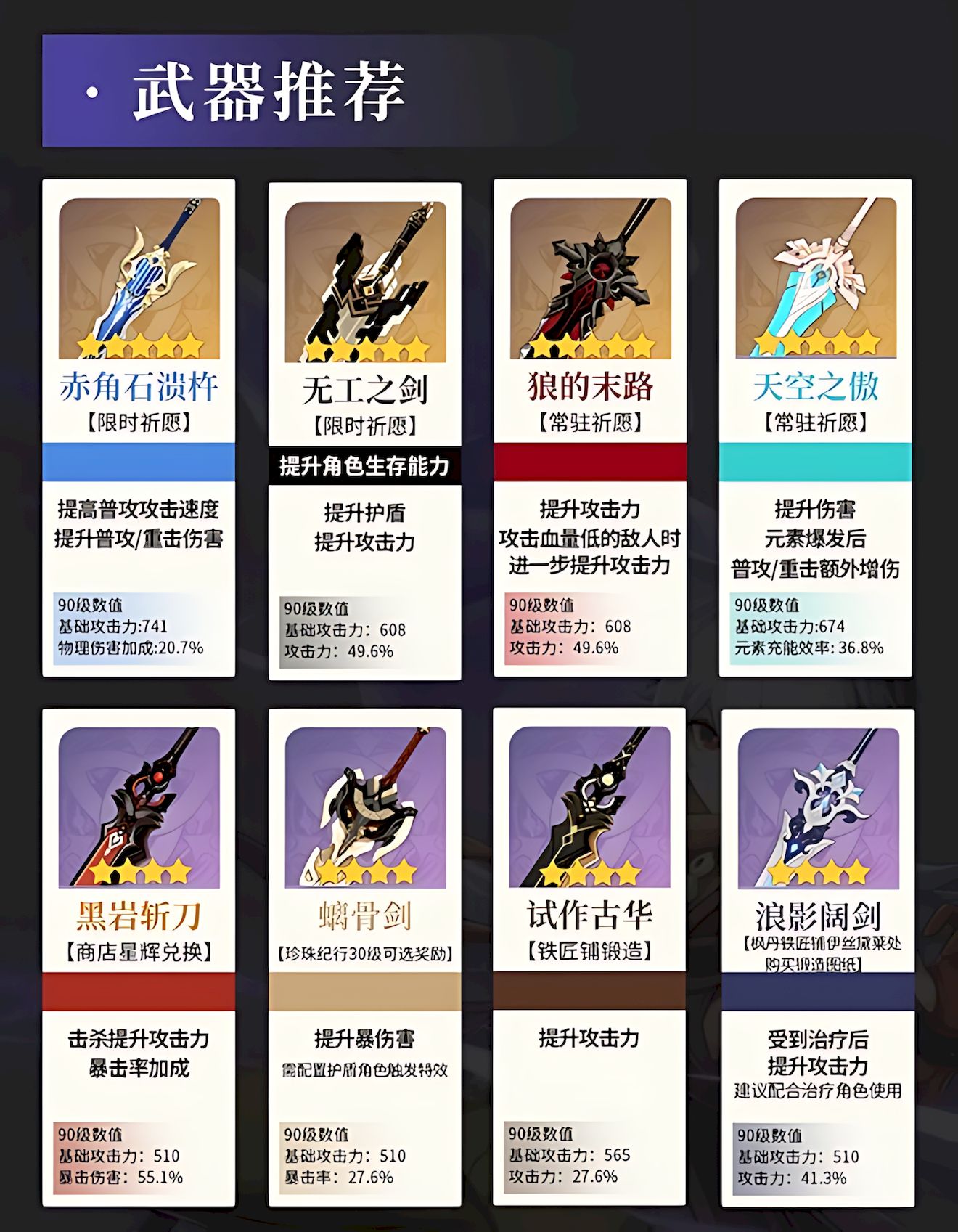 3、武器五星选狼的末路最优,四星优先螭骨剑过渡,两类武器适配驻场输出定位,能显著提升物理伤害与整体战力。