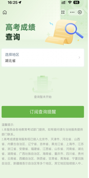 需注意的是当前成绩查询功能尚未开放,建议考生在6月25日成绩公布日再进行操作。该平台还整合了院校检索、专业筛选和报考指导等实用功能,为考生提供全方位的升学服务。
