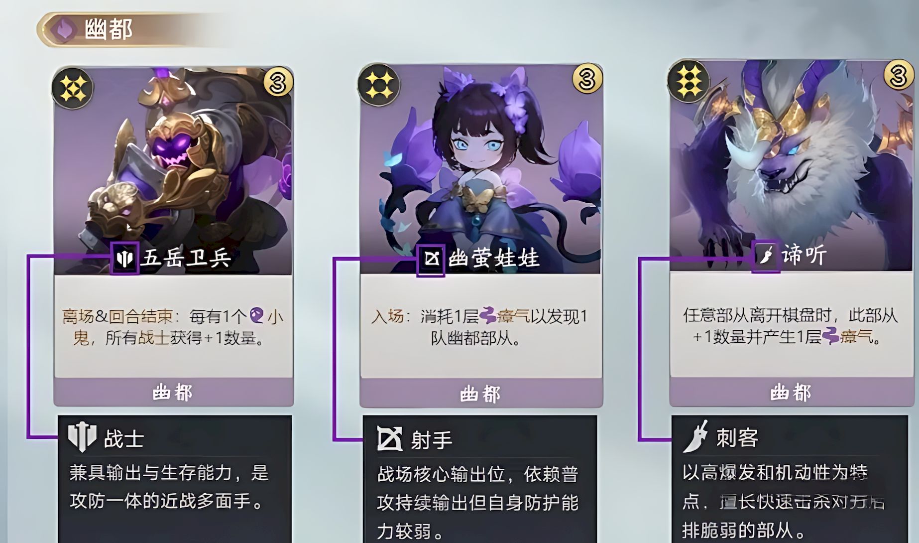 1、爆兵流核心机制为资源层数加兵种联动,分刺客射手战士三大兵种,战士系小鬼分支扛伤输出,幽都层数越高全队战力加成越显著。