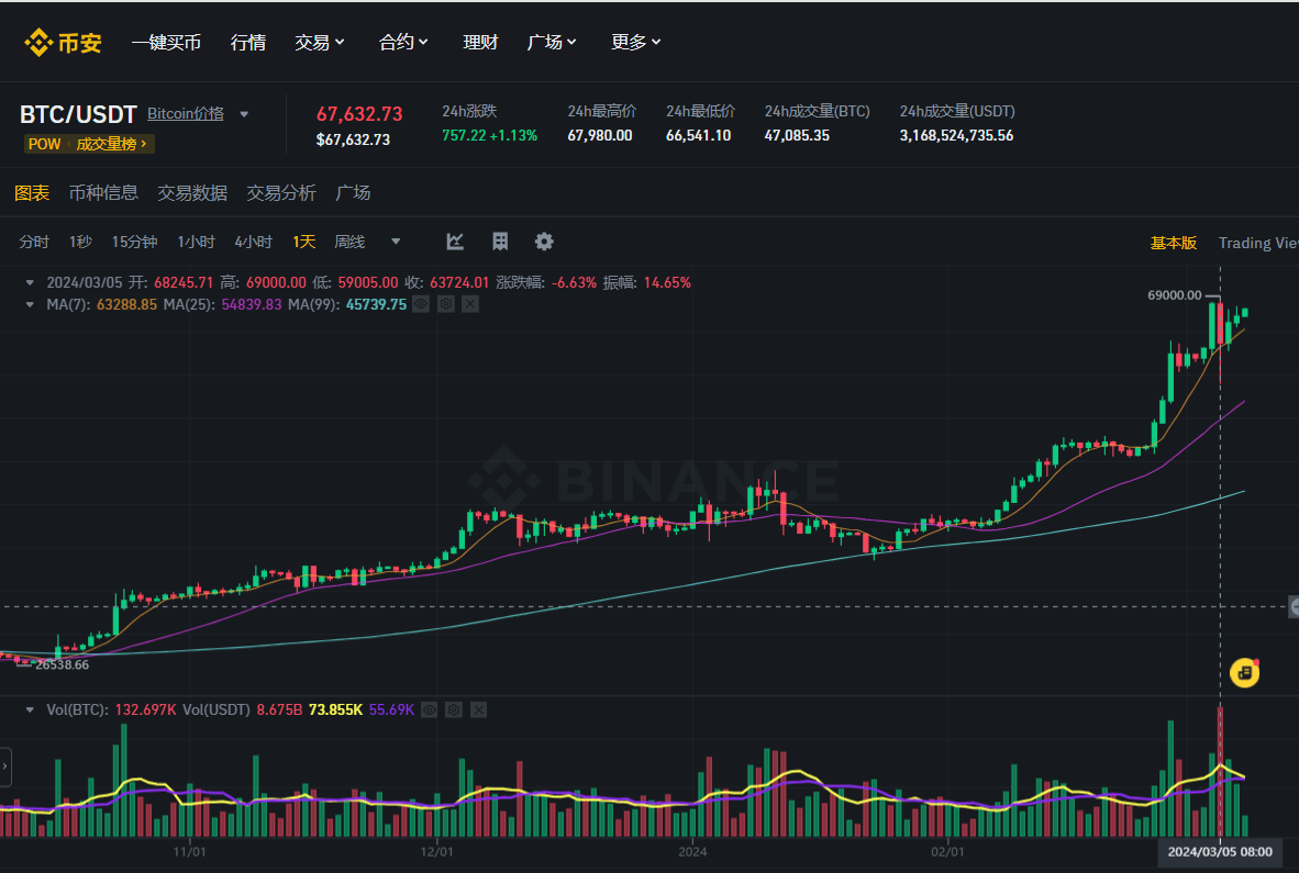 币安全球用户1.3亿,是全球用户量最多的交易平台, 交易量也是占领第一名,24小时交易量高达百亿美元,单每天的k线记录,成交额高达近9亿。