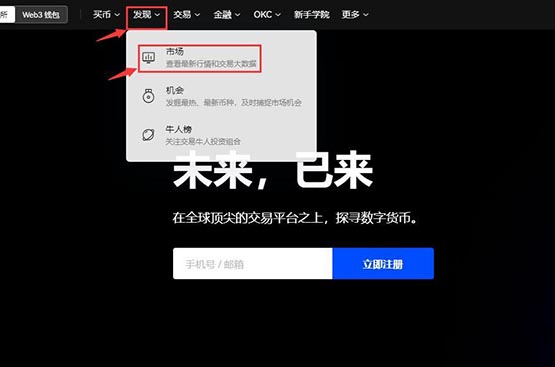 3. 通过首页【发现】-【市场】进入交易页面
