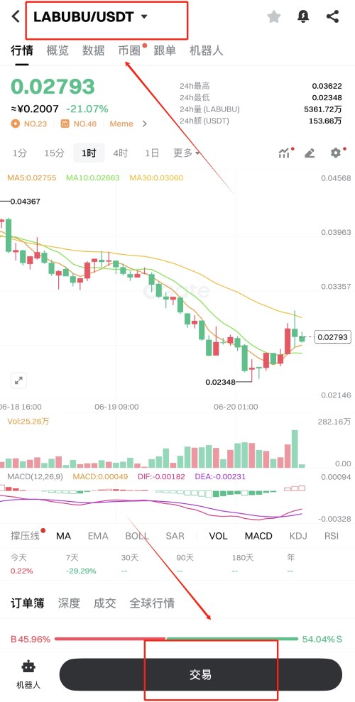 2.搜索LABUBU/USDT交易对