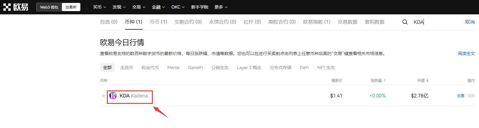 以欧易OKX平台为例,只需六步即可完成KDA币交易: