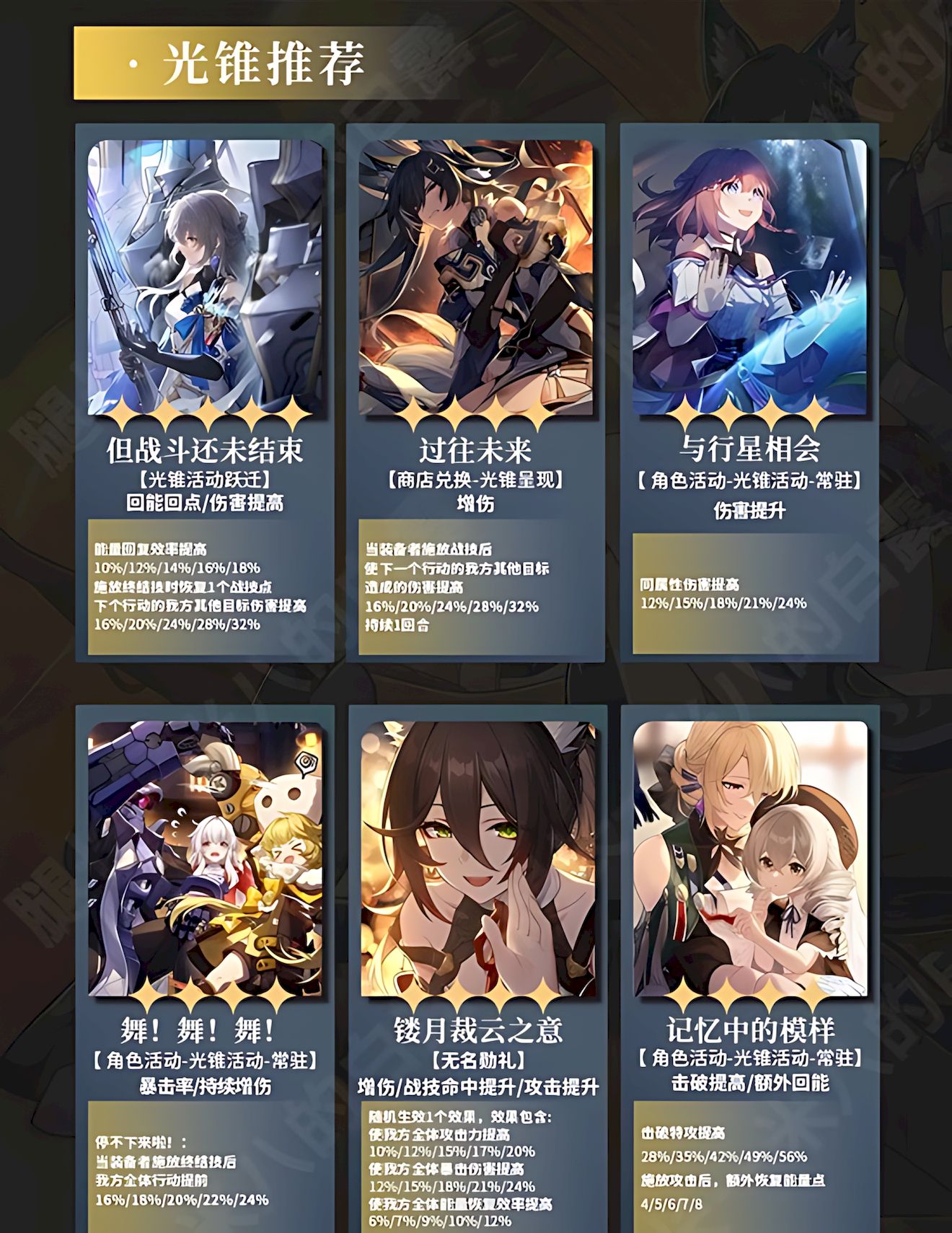 3、光锥优先选用但战斗还未结束,备选过往未来与行星相会舞舞舞,四星光锥可选镂月裁云之意记忆中的模样过渡。