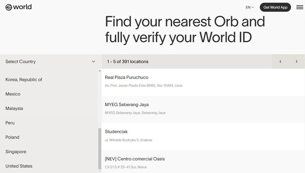 1. 全球17国设立391个Orb验证点