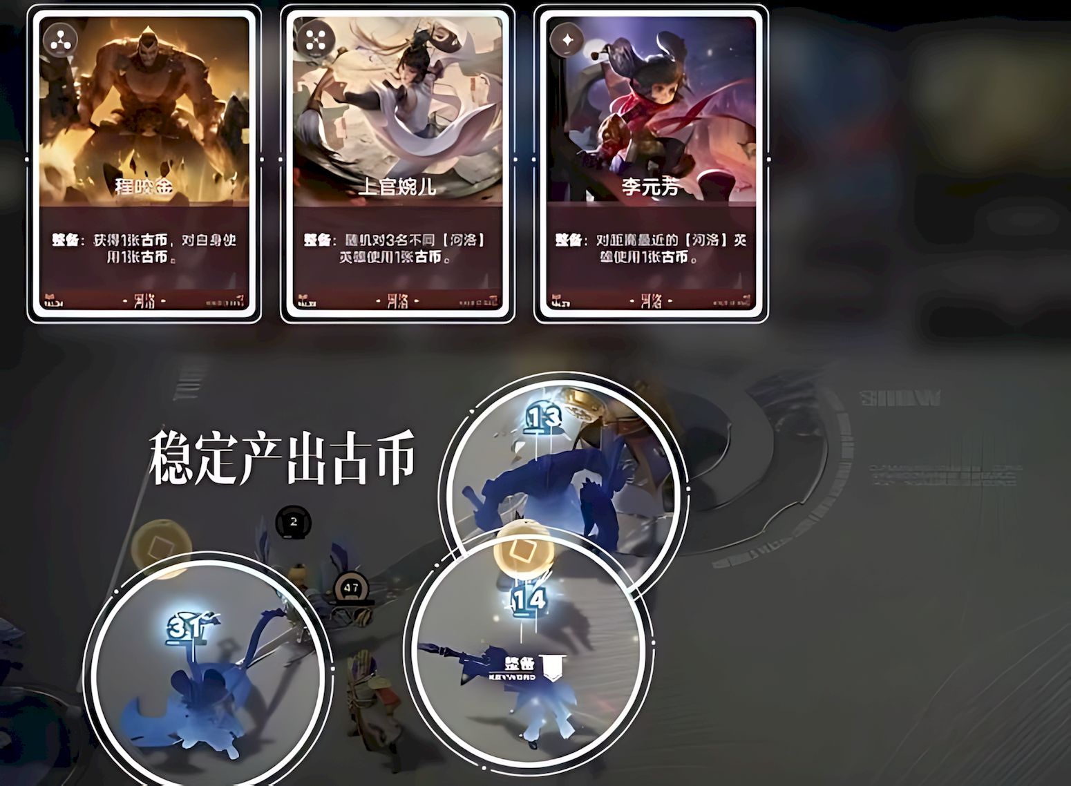 1、阵容又称河洛古币成长流以河洛英雄为体系,狄仁杰作为核心输出,程咬金上官婉儿李元芳盾山可稳定产出古币。