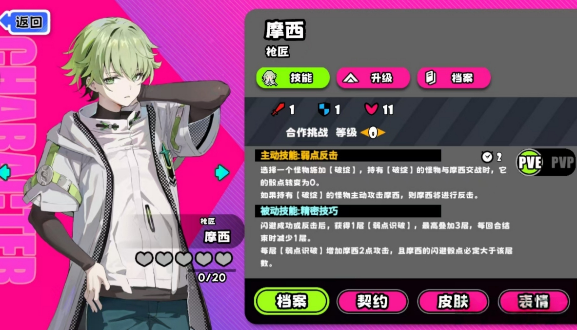 2、合作模式随战斗累积弱点识破层数,主动技破绽让怪物投掷点数归零,攻击摩西会触发反击,机制形成触发增益消耗闭环循环。
