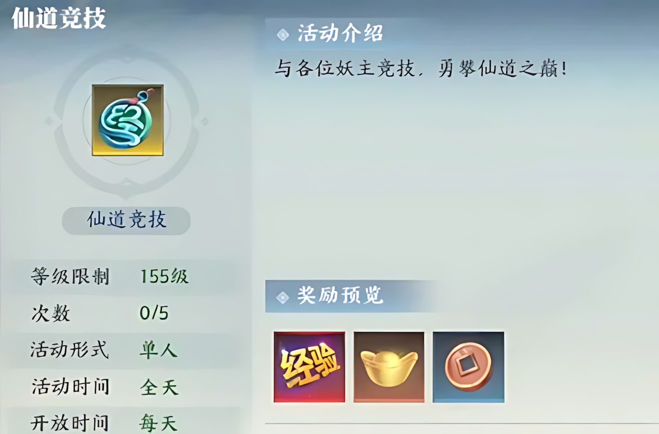 1、仙道竞技需修为达155级并完成指定主线解锁,每日五次挑战机会,系统匹配四位战力相近对手,可刷新列表亲自操控角色对战敌方镜像。