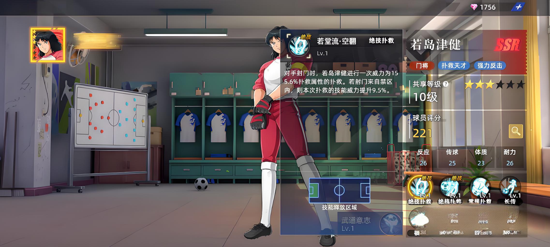2、绝技若堂流空翻是核心扑救手段,禁区内射门可额外提升威力,若堂流蹬跳专门应对高空抢点,体力不足时强化反应表现。