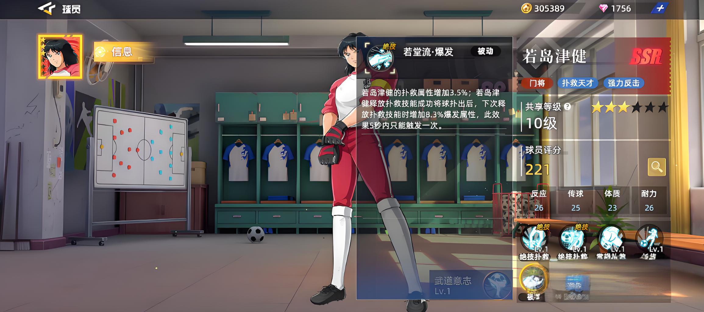 4、若堂流爆发强化扑救基础属性,成功扑救后附加爆发增益,武道鼓舞提升反应属性,同时增强团队协防与争顶表现。
