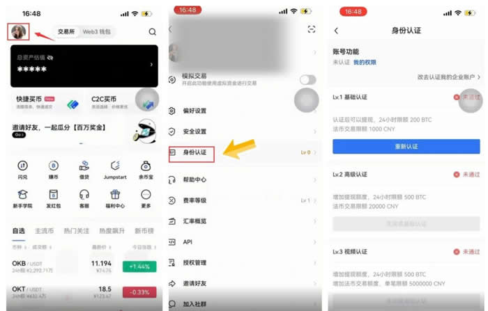 1.访问欧易APP(),完成手机/邮箱注册及三级身份认证流程