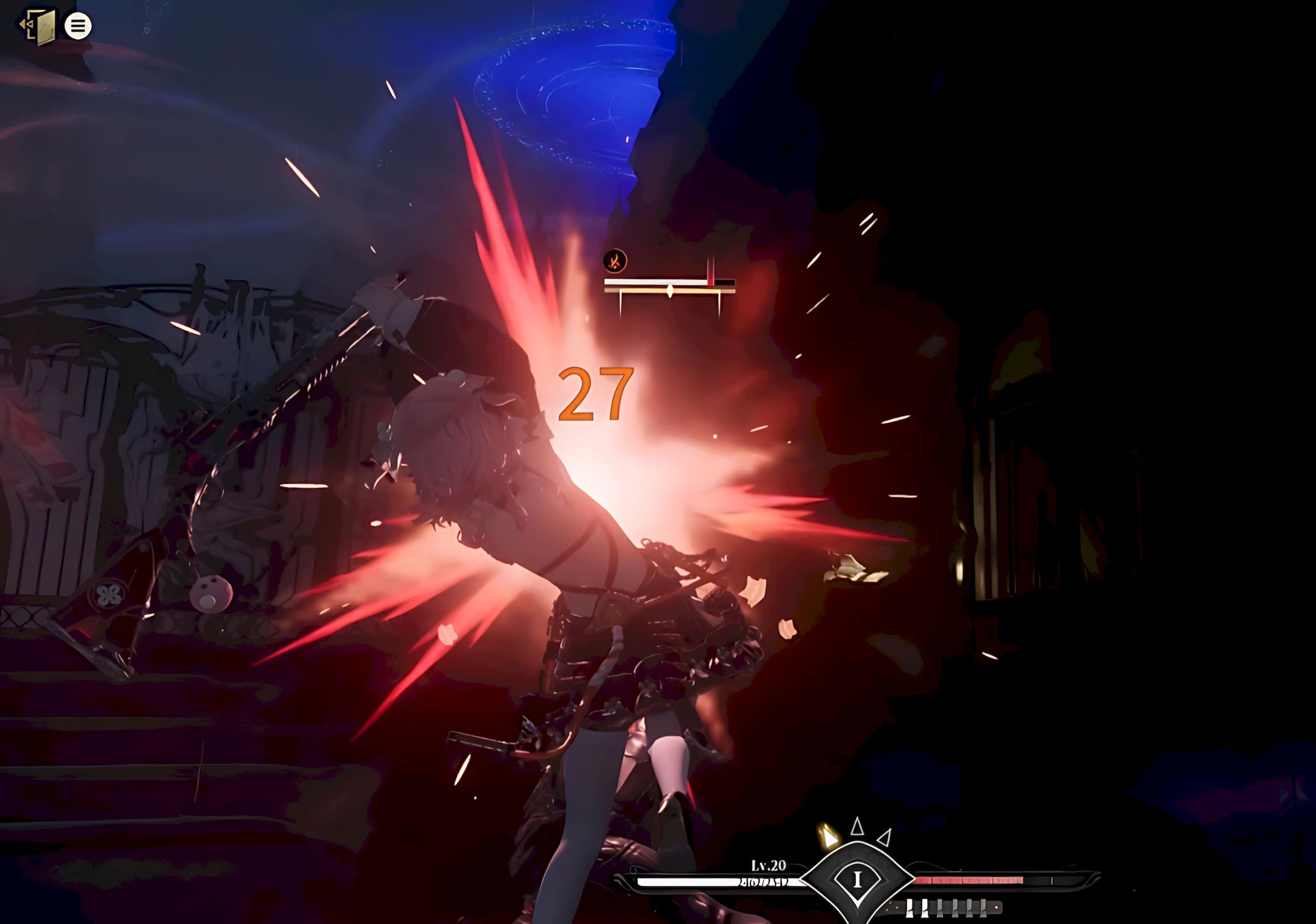 3、具备扎实近战输出能力,贴近对手普攻可挥枪从下往上重击,完成攻击后后撤几步再切换火炮瞄准狙击。