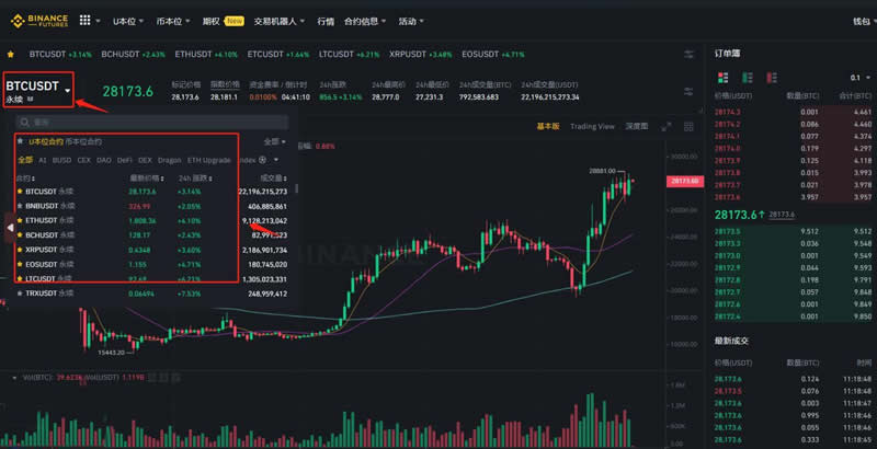 14.在U本位或币本位合约中选择交易品种