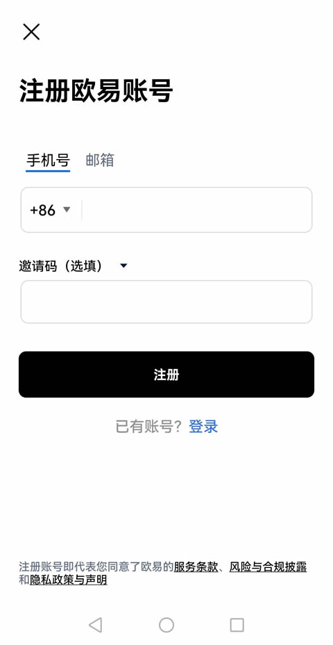 支持手机号或邮箱注册,建议优先选择手机号注册以便后续交易操作。