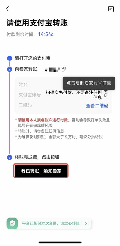 一键卖出功能方便快捷,需及时确认收款信息。