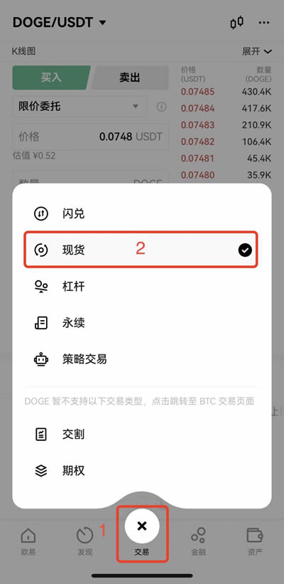 2.币币交易卖出