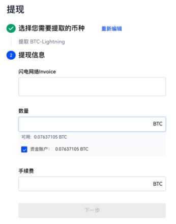 1.在官网通过【资产管理】-【提钱】选择BTC-Lightning网络
