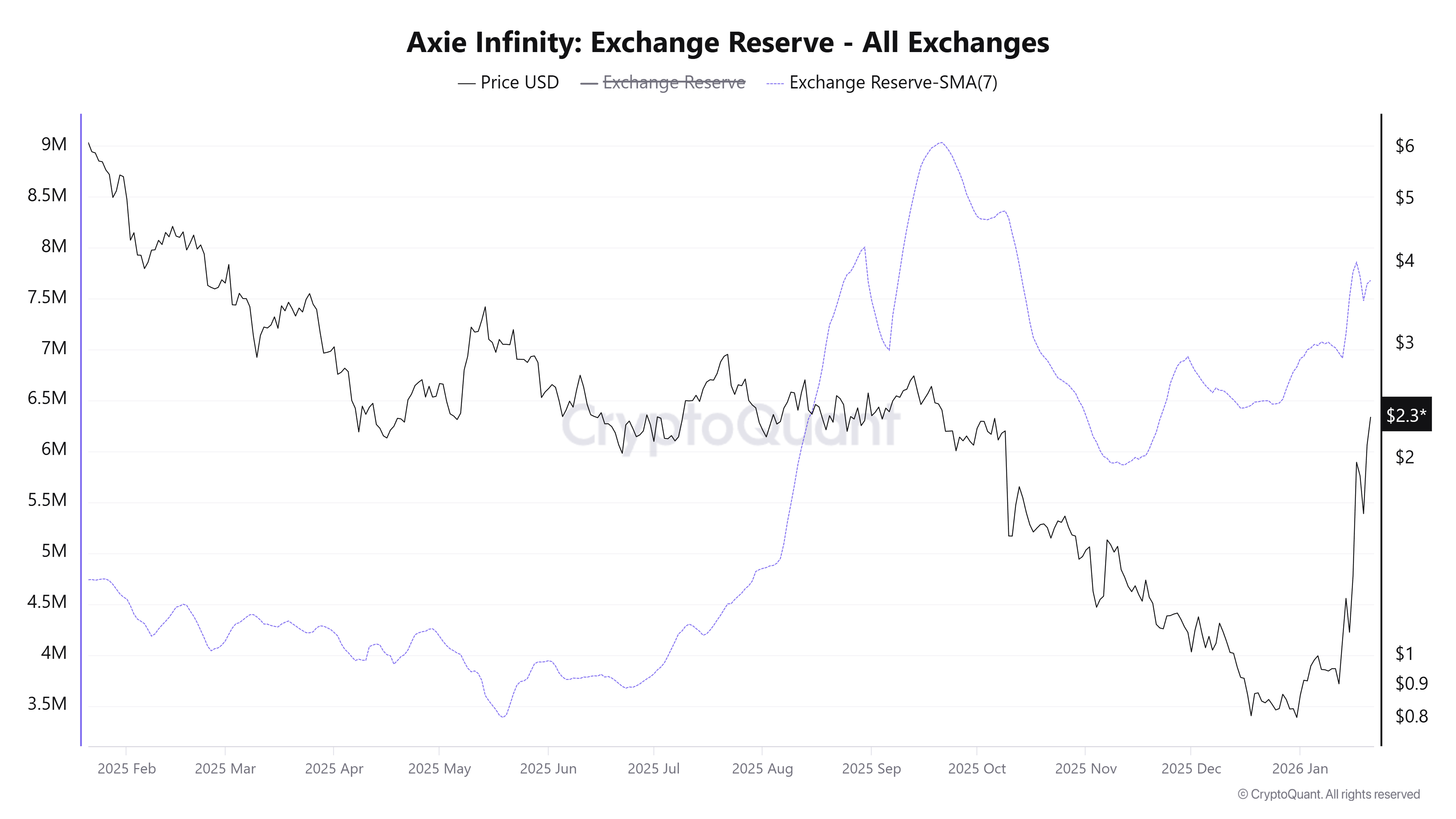 然而惊人涨幅背后潜藏着链上预警信号:交易所AXS余额随价格上涨同步增加,表明更多代币正进入流通市场,可能形成抛压。
