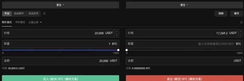 5、确定借币数量,如需20,000 USDT交易,在已划转10,000 USDT基础上再借10,000 USDT。
