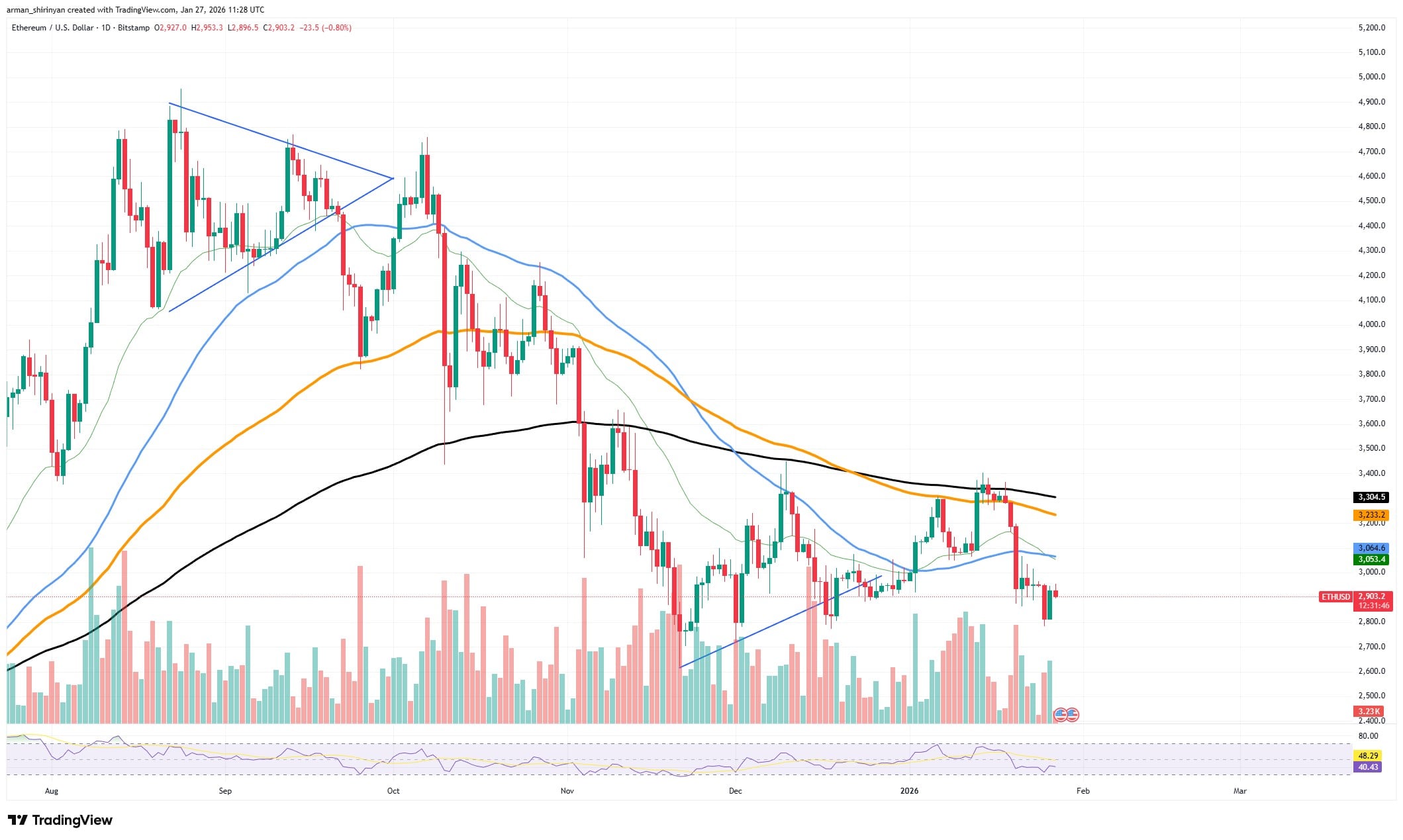 这并不意味着价格将立即上涨,也不应被视为牛市临近的信号。图表显示ETH仍处于关键均线下方,结构性改善不会自动转化为短期价格强势。