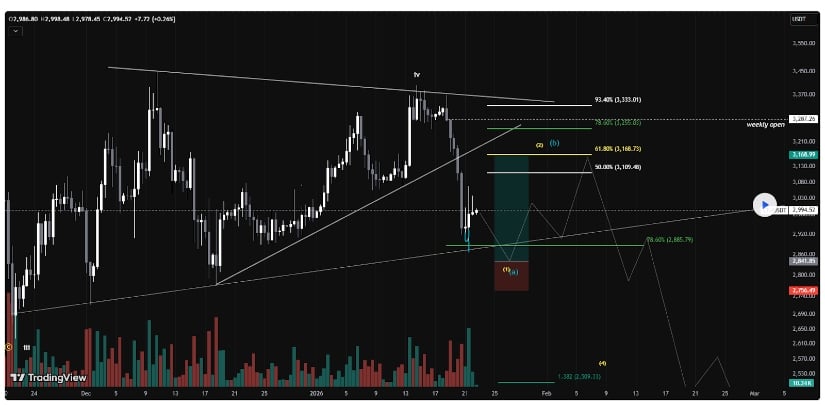 对短线交易者而言,确认跌破2,800美元将快速否定蓄势理论。对长线持有者来说,只要月线支撑未破,整体看涨结构依然有效。