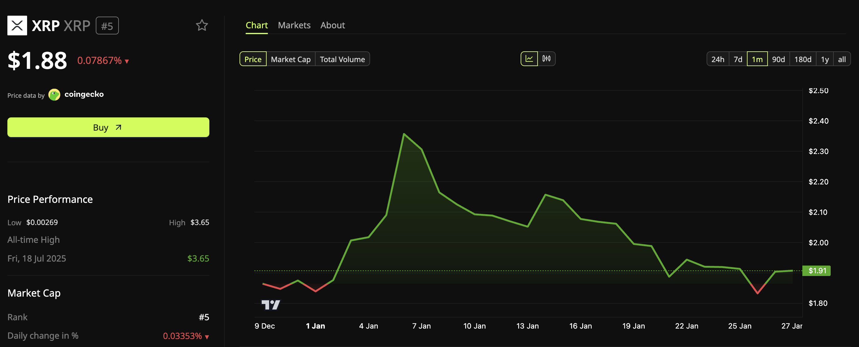 在年初短暂上涨后,XRP价格持续承压,这与加密货币市场的整体低迷走势相呼应。