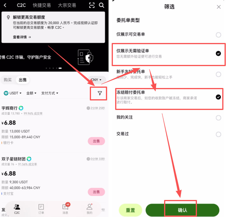 第一步:进入C2C交易并切换模式