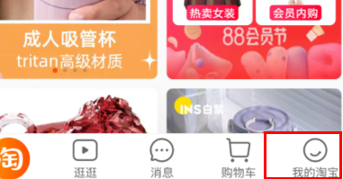 第一步需要启动淘宝APP,在底部导航栏选择【我的】个人中心入口进入账户管理界面。