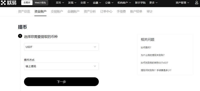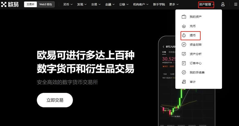 1. 登录欧易交易所(),在首页选择【资产管理】中的【提币】功能